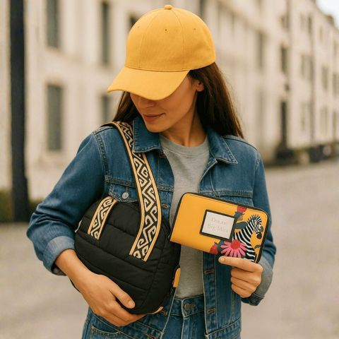 Combo “Amarillo urbano” de Bandolera + Billetera + Gorra