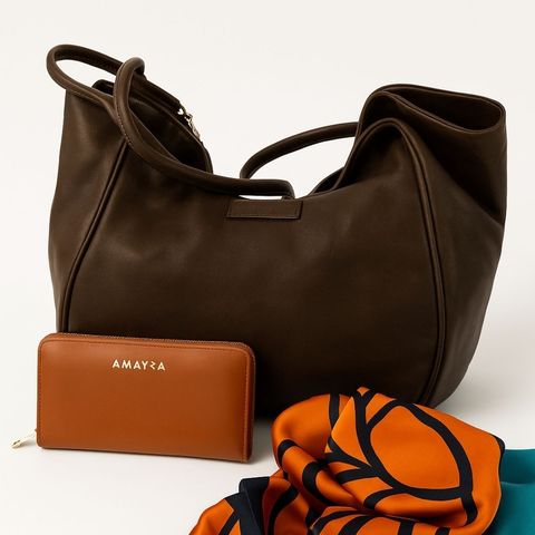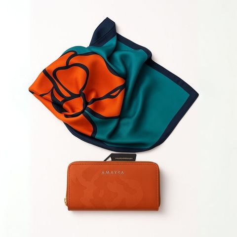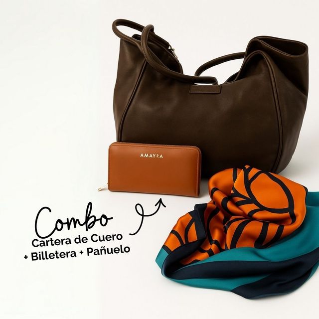 Incluye | Cartera de cuero Morrison + Billetera Amayra + Pañuelo estampado |