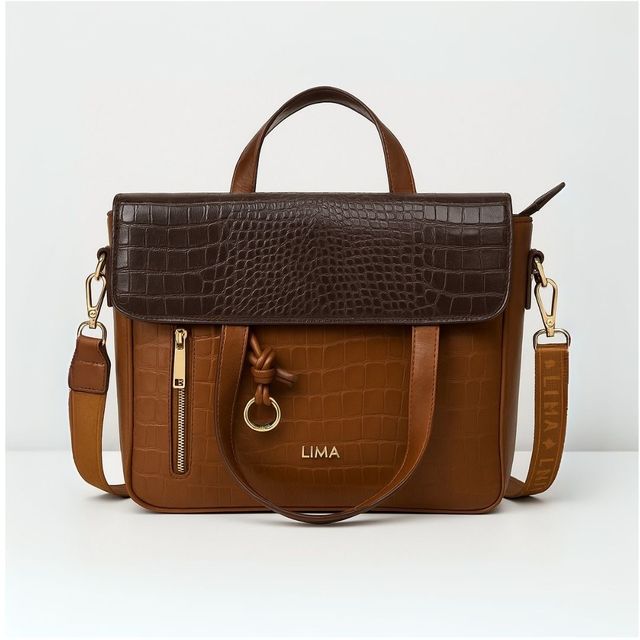 Maletín Lima | Textura símil croco en dos tonos, amplio, con correa regulable y detalles dorados |