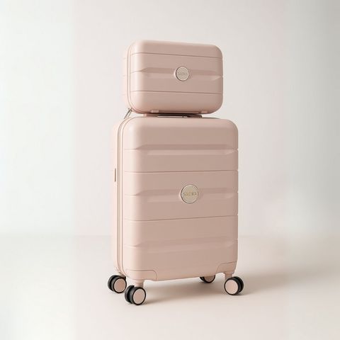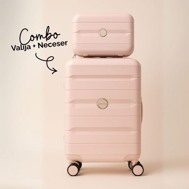 Set de viaje elegante y práctico en rosa pastel. Incluye valija carry on rígida y beauty case. Diseño minimalista, liviano y resistente, ideal para viajar con estilo y comodidad. Ver más detalles